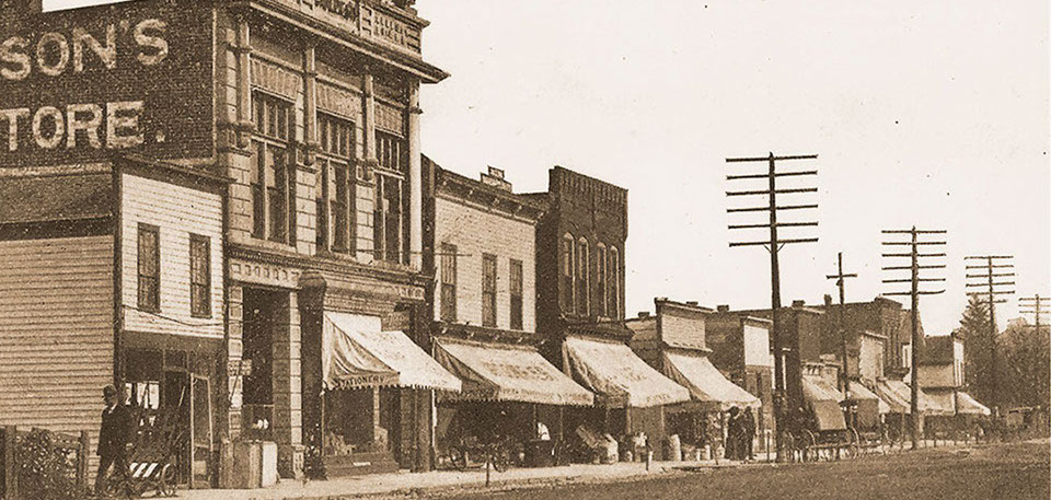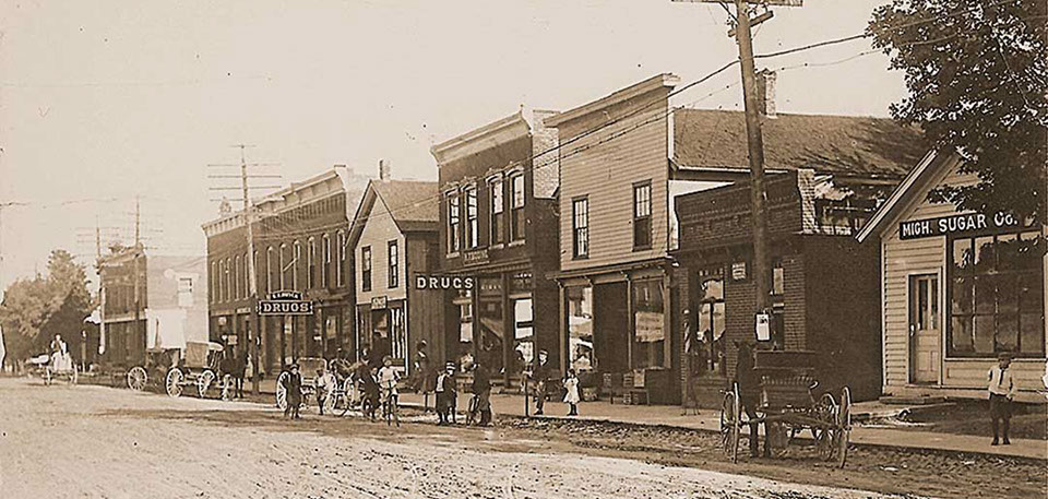 Thus Clio, then known as Varney's or Varney, began to develop, as many other cities across the nation did in the late nineteenth century along the railroad tracks. The prosperity of Clio was then assured. A village was plotted, stores and manufacturing establishments sprung into existence, lumbering became an important interest, and the new village rapidly increased in numbers. By the early 1900s the Village of Clio, with its population of 800 industrious citizens, a new school, mill pond, wide streets, small industries, and various merchandise establishments had become a very picturesque little hamlet snuggled on high ground between the creek and the railroad.