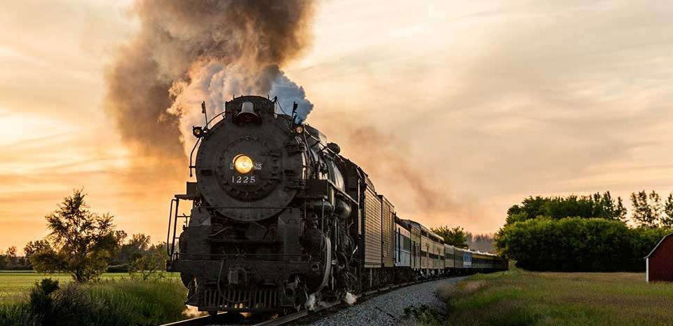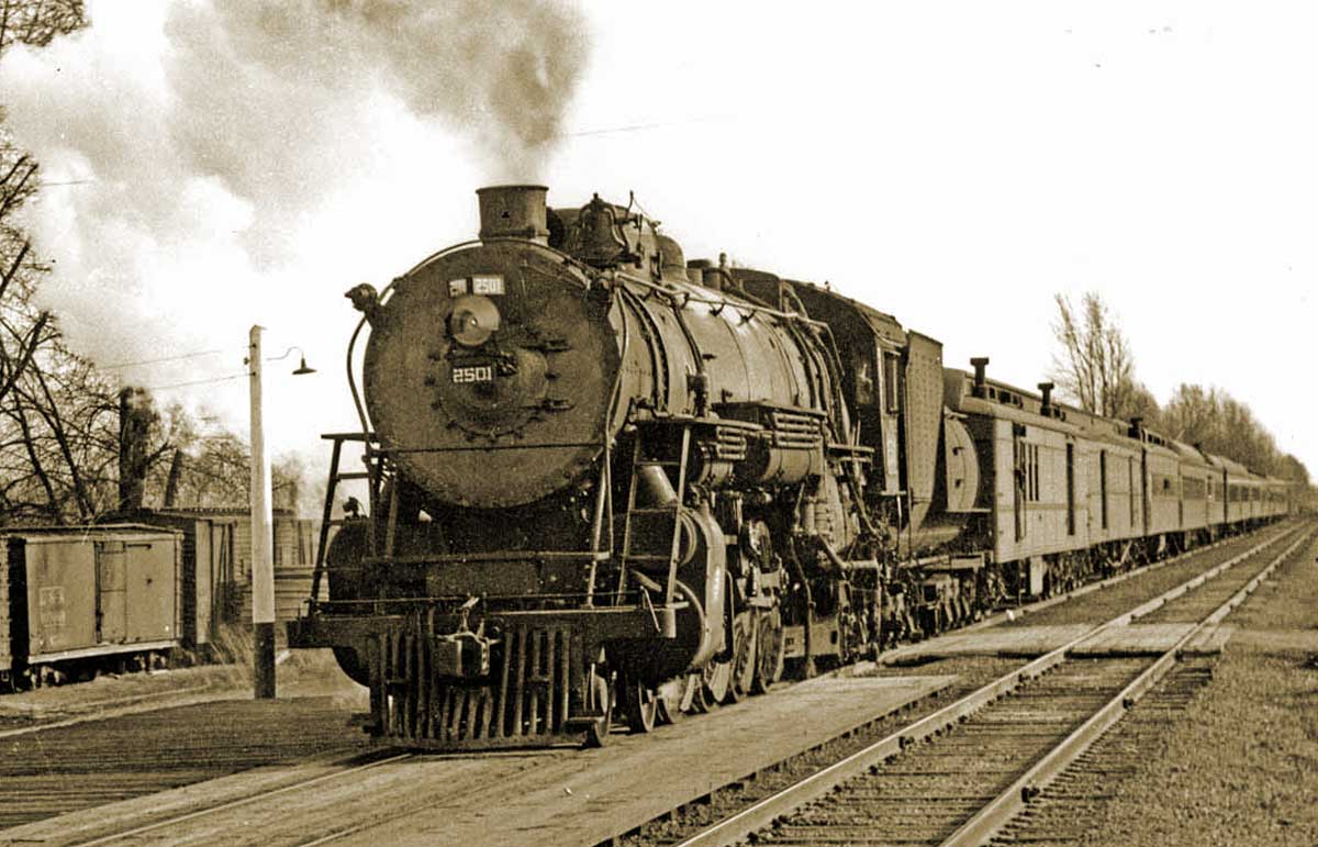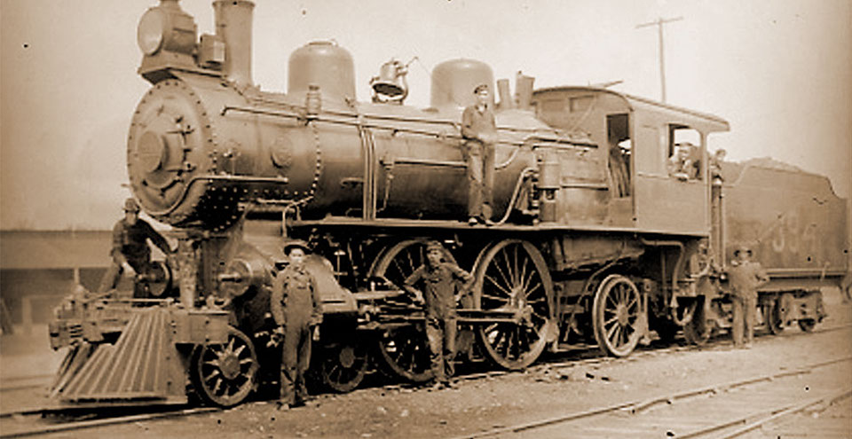 A Pere-Marquette locomotive backs through the power switch at Clio Depot